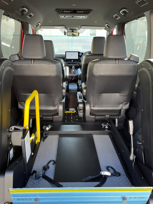 広々とした快適な空間の車内。付き添いの方もリラックスしてご乗車いただけます。